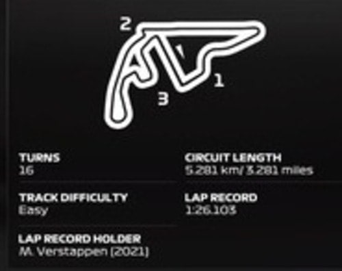 ERS (Qualifying) – You’ve got loads of extra Overtake ERS mode to use on flying Quali laps in online races here – basically as much as you want on the straights. You can use it on the pit straight and two DRS straights, plus anywhere else in sector 1 you can. Aim to run it down to 10-20% as you reach the end of the second DRS zone, as it recoups loads in sector 3. Be sure to use it as it really boosts acceleration and top speed. Ideally, you’d aim to drain the yellow ERS meter just as you cross the line to finish a flying lap.
